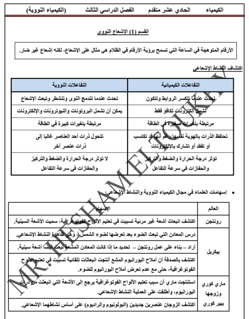 كيمياء البكالوريا ورقة عمل 1 الكيمياء النووية